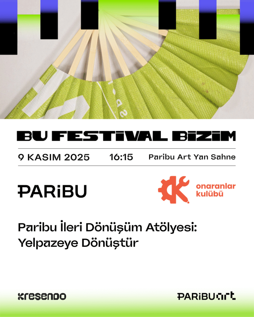 “Paribu İleri Dönüşüm Projesi” kapsamında, daha önce Paribu’nun açık hava mecralarında ve etkinliklerinde kullanılarak işlevini tamamlamış atık brandalar, Onaranlar Kulübü yürütücülüğünde katılımcılar tarafından rahatça kullanılabilecek işlevsel yelpazelere dönüştürülür. Katılımcılar, brandalardan kesilen parçaları ahşap tutacaklar ve diğer malzemelerle birleştirerek hem estetik hem de sürdürülebilir bir ürün ortaya çıkarırlar. Atölye boyunca brandanın kesimi, tutacağa sabitlenmesi ve tüm […]